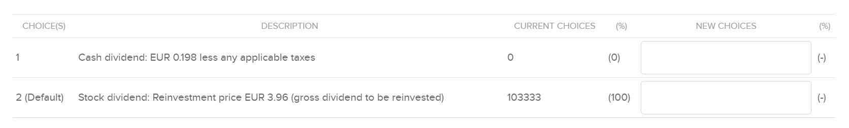 1.) Rückgabe der Anrechte an die Gesellschaft. In diesem Fall erhalten Sie je Anrecht 0,198 EUR als Dividendenzahlung