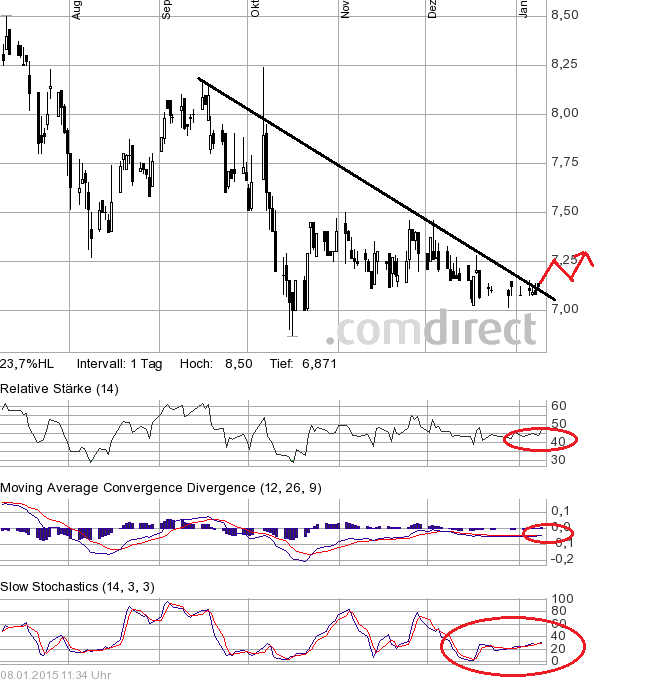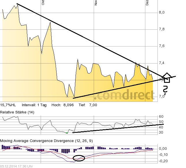 Scooby: Mal was anderes, die Kurse ziehen an! Denke, wir kommen bald auf 7,50 Euro für's Erste. Lieber sähe man wohl 9,00 Euro + , aber wer kann das im Moment überblicken. Auf Dauer wird's gut möglich sein, denn schließlich ist die Aktie mit ihrer Dividende auch ertragreich. Das Risiko, hier investiert zu sein, hält sich in engen Grenzen. Nur meinen persönliche Meinung. Nicht nachmachen! ....Bis bald.