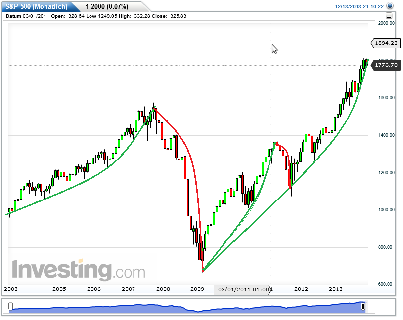 4. Nach Abschluss der bärischen Flagge Fall auf weitere Dezembertiefs, z.B. bei 8888 oder 8760 bzw. 8660