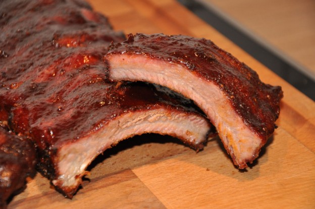 Die Spare Ribs werden insgesamt 4 Stunden indirekt gegrillt. Dafür eignet sich am besten ein Barbecue Smoker oder ein Kugelgrill. Die Temperatur muss immer zwischen 110 und 130 Grad Celsius liegen.