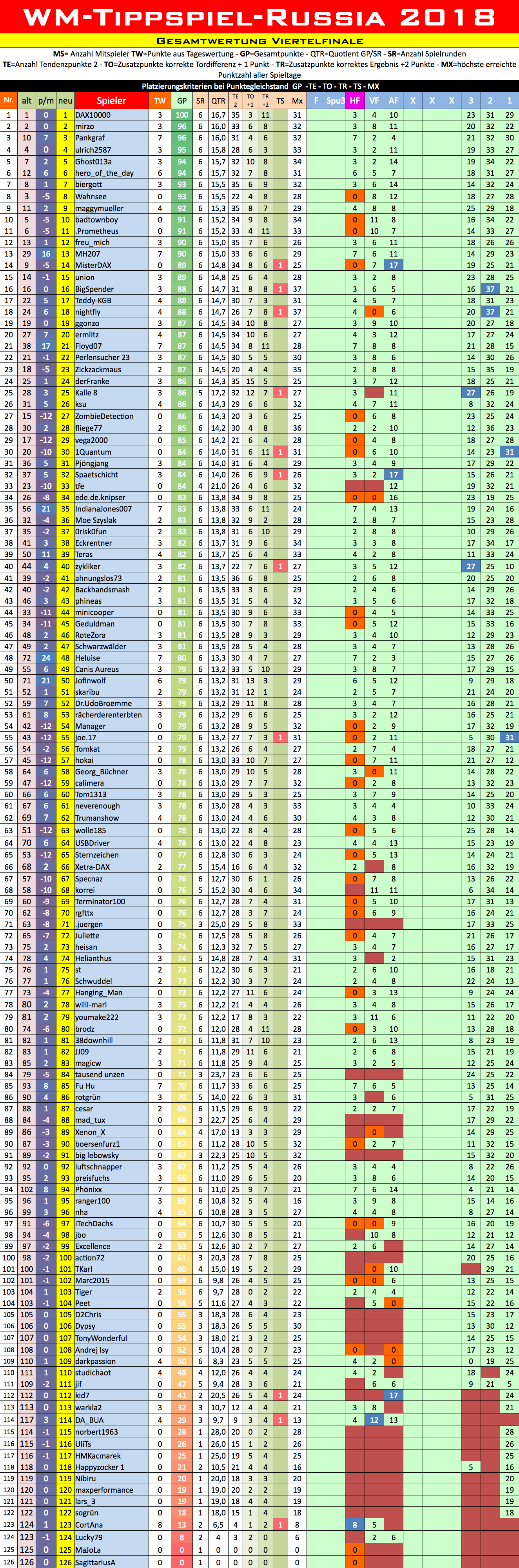 Die Auswertungen zur vorherigen WM-Runde 5 erfolgen dort: