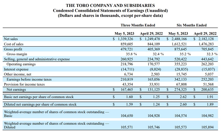 The Toro Company Reports Record Results for the Second-Quarter of Fiscal 2023