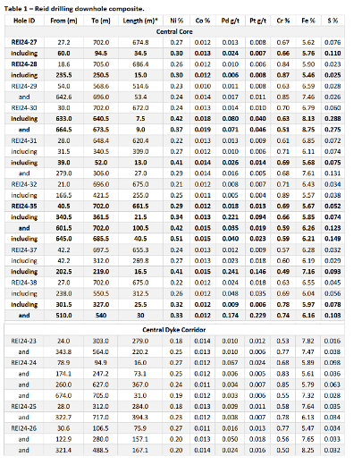 Ebenso herausragend waren die 0,27 % Nickel über 674,8 m, inklusive 0,30 % Nickel über 34,5 m, die Bohrloch REI24-27 zu ‚Reids‘ jüngster Rekordrallye beigesteuert hat.